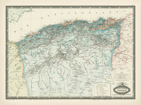 • La carte est une représentation très détaillée et bien gravée de l'Algérie du milieu du 19ème siècle.