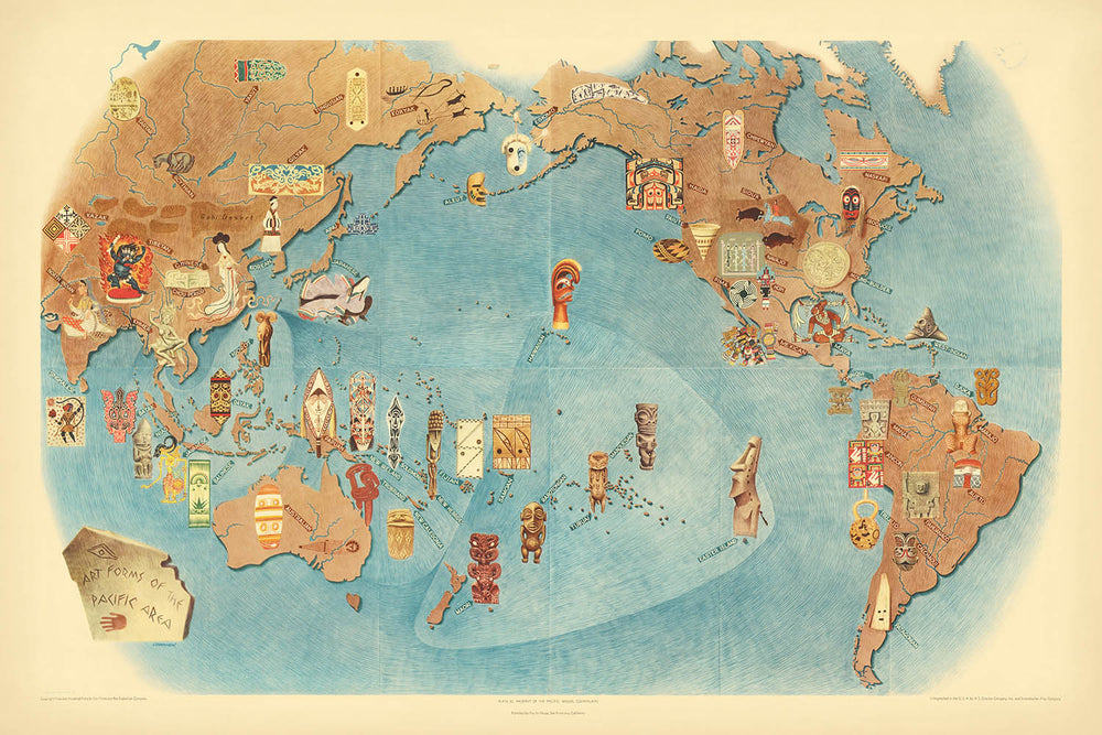 Ancienne carte des formes d'art du Pacifique par Covarrubias, 1940