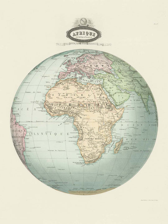 Ancienne carte sphérique de l'Afrique par Garnier, 1860