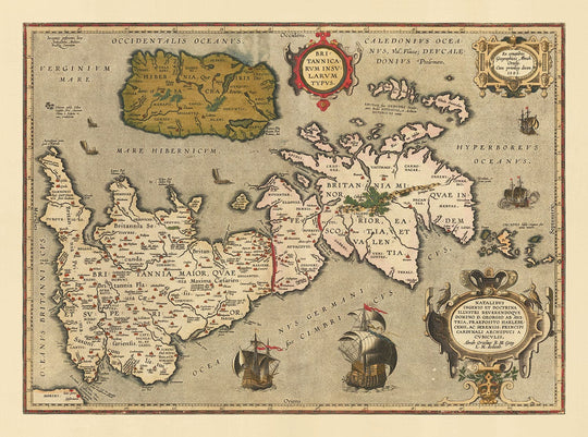 Ancienne carte des îles britanniques d'Abraham Ortelius, 1595: Angleterre, Irlande, Pays de Galles, Écosse