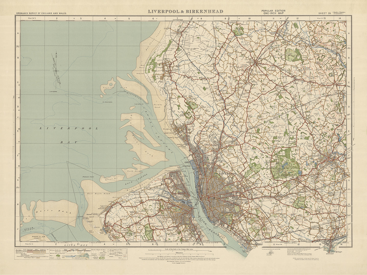 Ancienne carte de l'Ordnance Survey, Feuille 35: Liverpool & Birkenhead, 1925 : St Helens, West Kirby, Ormskirk, Bootle, Wallasey