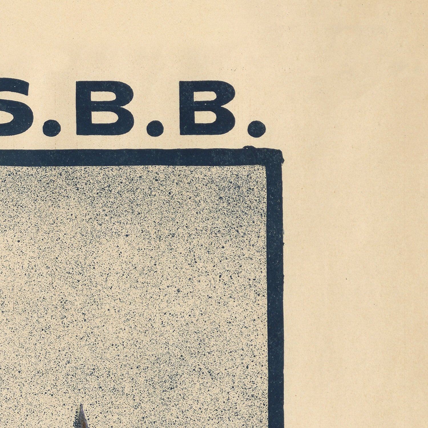 This 1906 Bern poster is notable for how it pairs national identity with the romance of travel. The trilingual caption—Schweiz, Switzerland, Suisse—anchors the design, making the destination immediately legible to international visitors. Meanwhile, Cardinaux emphasizes the city’s unique geography: Bern’s historic core perched within a sweeping river loop, the famed Minster rising above orderly roofs. It’s an early, influential example of how Swiss tourism posters fused clarity, elegance, and a sense of place to inspire wanderlust.