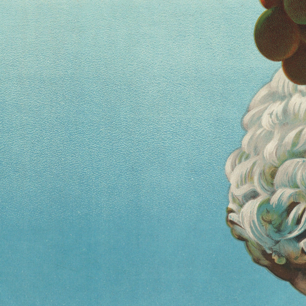 Color and design are where the piece truly shines. Dominant soft blues and fresh, saturated greens are energized by accents of burgundy and warm brown, creating a crisp cool–warm contrast that draws the eye. The naturalistic grape motif—an ode to Vitis vinifera—symbolizes fertility and abundance, while the geometric stylization of figures and architecture adds a precise, contemporary edge. Smooth, refined strokes and sharply cut forms lend it a clarity that reads beautifully from across a room. Whether hung in a kitchen, dining room, bar, or study, it’s a striking conversation piece that pairs effortlessly with modern, mid‑century, and transitional interiors.