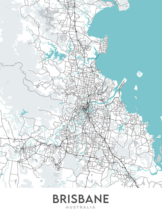 Plan de la ville moderne de Brisbane, Australie : hôtel de ville, Story Bridge, South Bank, UQ, aéroport