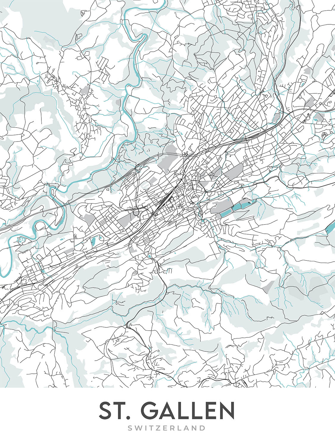 Cette carte de Saint-Gall est un incontournable pour tous ceux qui aiment le design moderne, la cartographie ou simplement les belles cartes. C'est une façon unique et élégante d'ajouter une touche de personnalité à votre maison ou votre bureau.