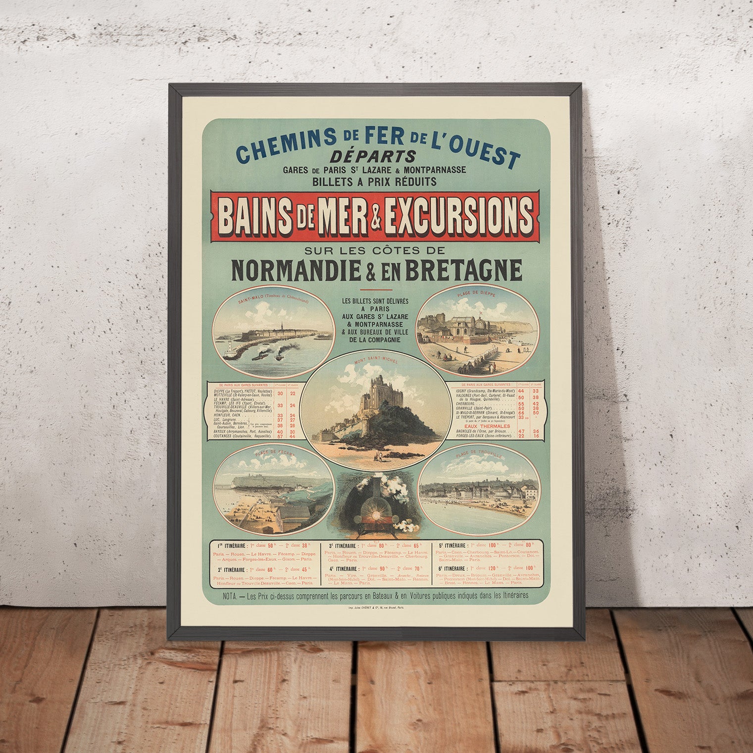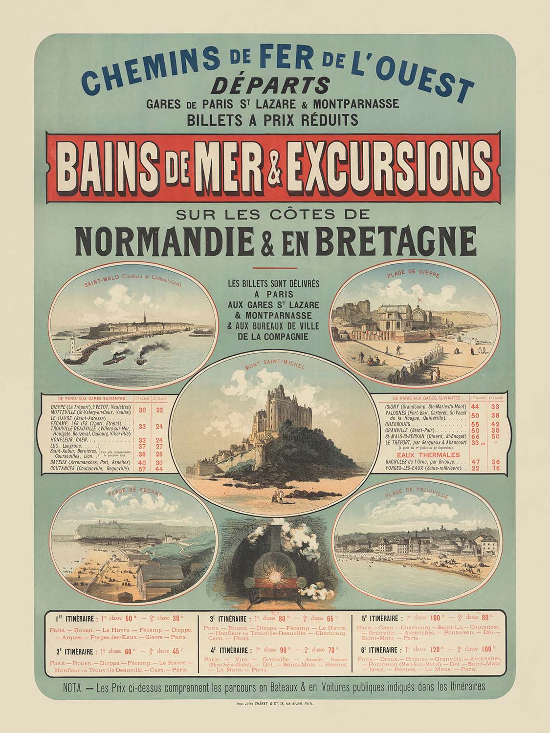 Normandy and Brittany Travel Poster: Chemins de Fer de l’Ouest – Bains de mer & Excursions by Jules Chéret, 1879