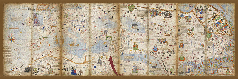 • Detailed depictions of trade routes and a variety of human figures representing different cultures