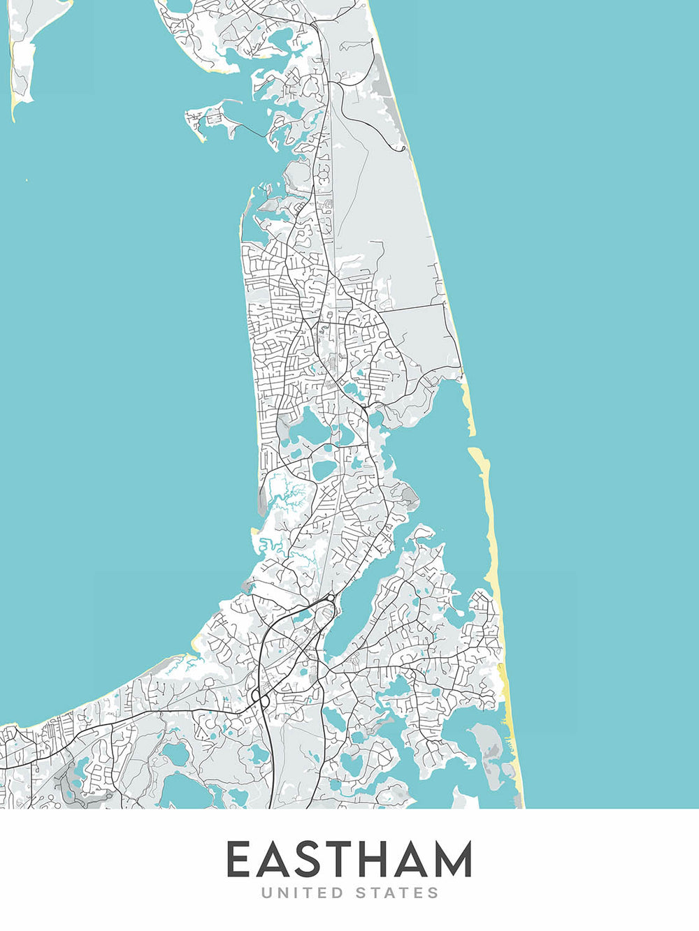 Questa creazione originale di The Unique Maps Co. è un pezzo di conversazione che sarà un'aggiunta elegante a qualsiasi casa o ufficio. La palette di colori tenui e le linee pulite di questa mappa completeranno qualsiasi schema di design d'interni, e la carta di alta qualità e la stampa garantiscono che questa mappa durerà per anni a venire. Questa mappa è perfetta per chi ama Eastham, o per chi apprezza una bella cartografia moderna.
