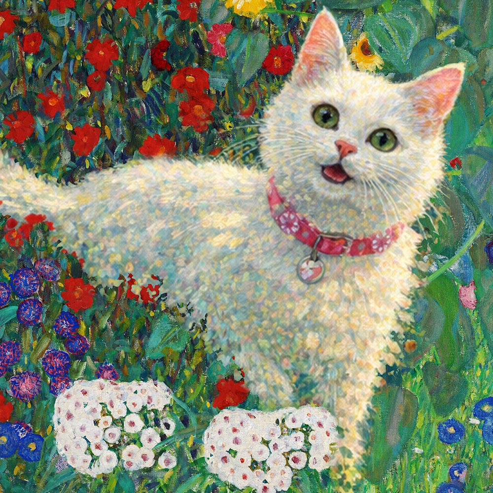 Now’s your chance to have your cat padding over one of Monet’s bridges, your dog lounging in the background of a Klimt painting, or your horse standing proudly in one of Turner’s romantic fields.