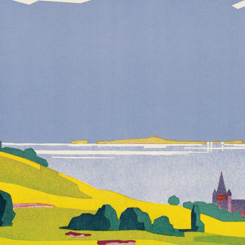 About the maker and printing: while the artist’s name is lost to history, the work reflects the precision and elegance of Swiss studio lithography in the 1930s and was printed locally—notations on the margin read “Printed in Switzerland” and “Lithographie ‘Simplon’ Lausanne.” Anonymous designers and printers of this period helped define the international reputation of Swiss graphic design: economical layouts, legible typography, and poster images that communicated at a glance across station halls and hotel lobbies.