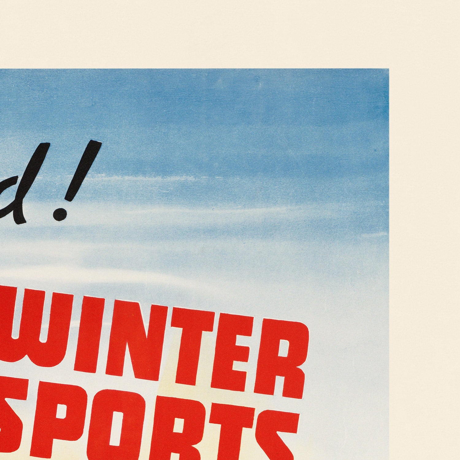 About the subject: Sun Valley was developed by Union Pacific as a purpose‑built ski destination at Ketchum, Idaho, centered on the luxurious Sun Valley Lodge. The resort quickly became synonymous with winter glamour and sunshine, thanks to dry mountain air and abundant snow, and it was among the first places in the world to feature modern chairlifts—turning a remote alpine valley into a household name. This poster’s headline, “Winter Sports Under a Summer Sun,” encapsulates that winning formula.