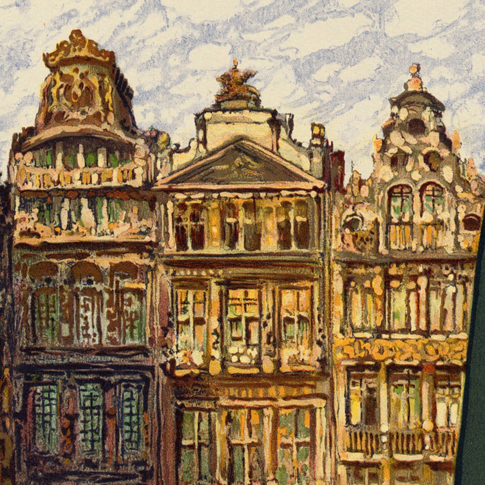 While no signed artist is recorded, the poster likely emerged from the municipality’s publicity department working with a skilled local studio—designers steeped in the late flowering of Art Nouveau and the emerging clean-lined sensibilities of the 1920s. Belgium’s poster tradition favored fluent drawing, ornamental detail, and impeccable typography, and this print reads as a model civic commission: confident, legible, and handsome from across a room.