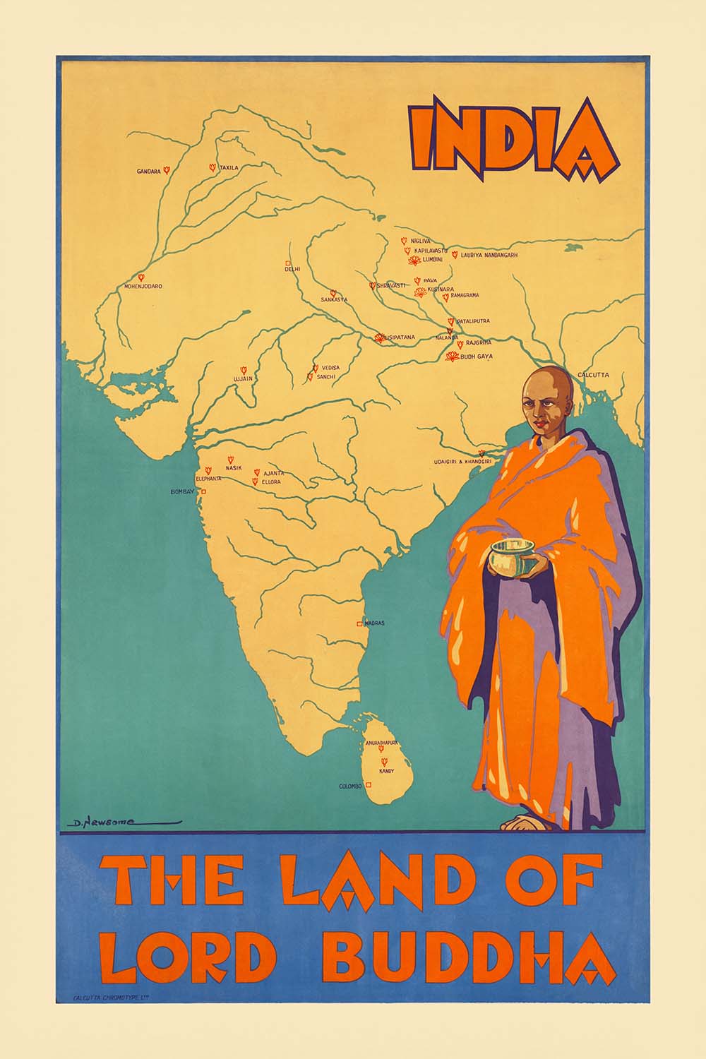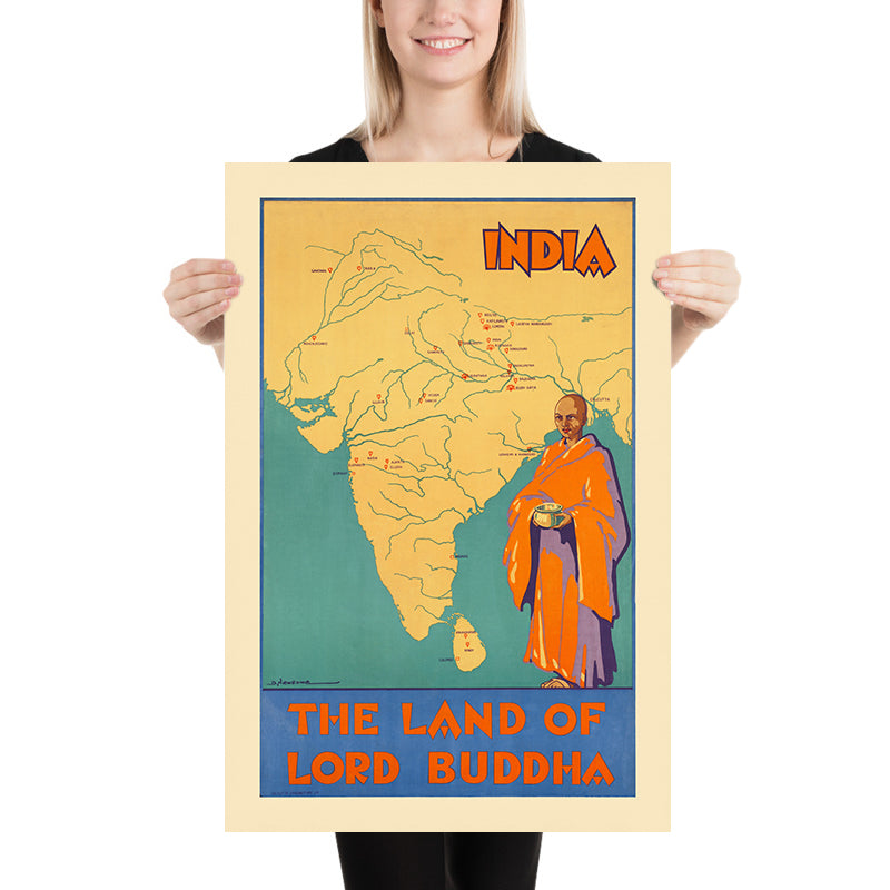 India Travel Poster: The Land of Lord Buddha by D. Newsome