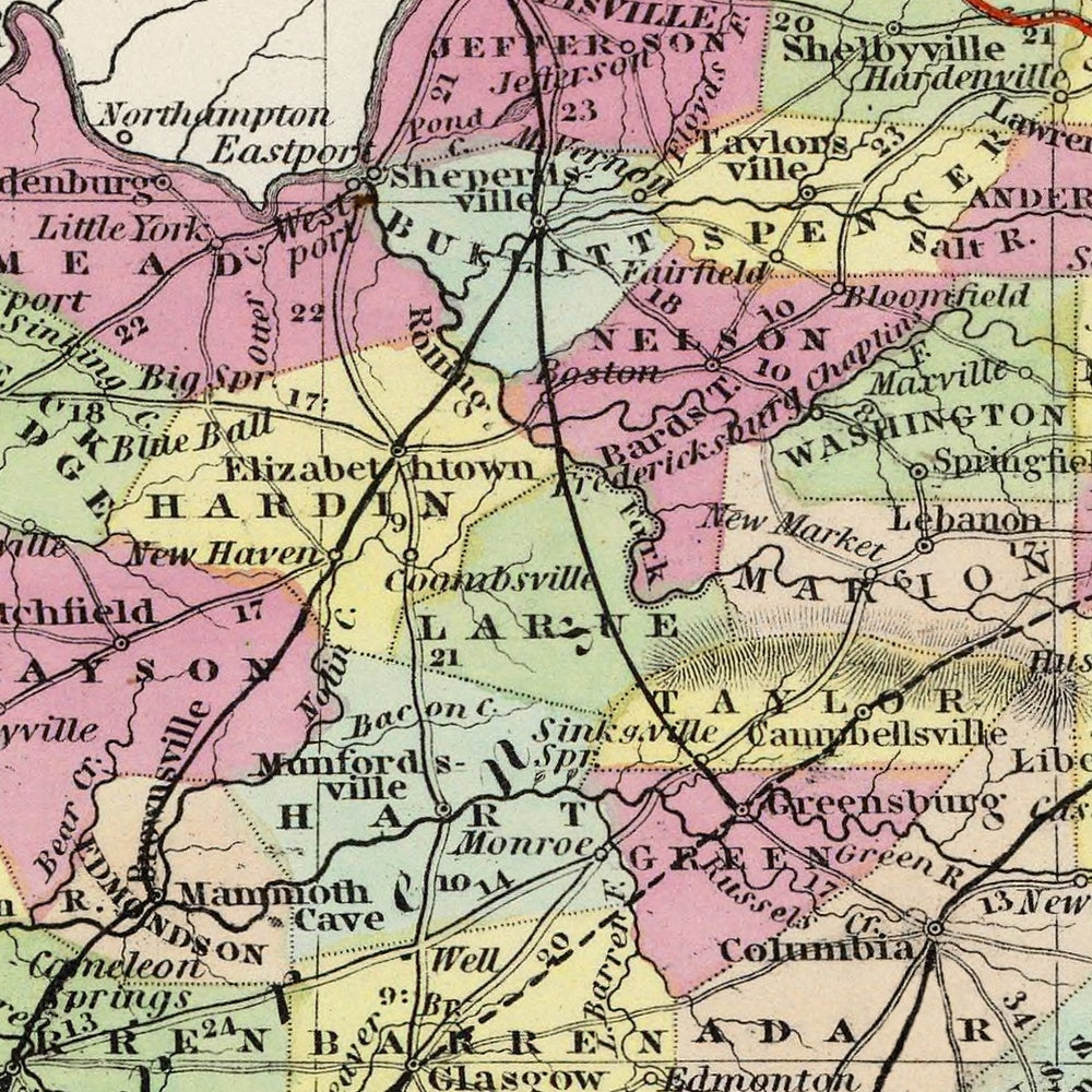 - Provides a snapshot of Kentucky’s geographical landscape in the mid-19th century.