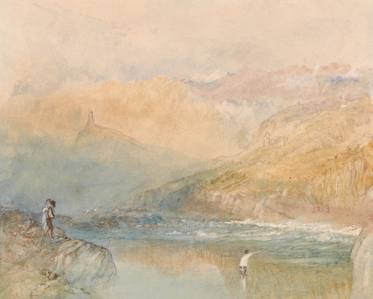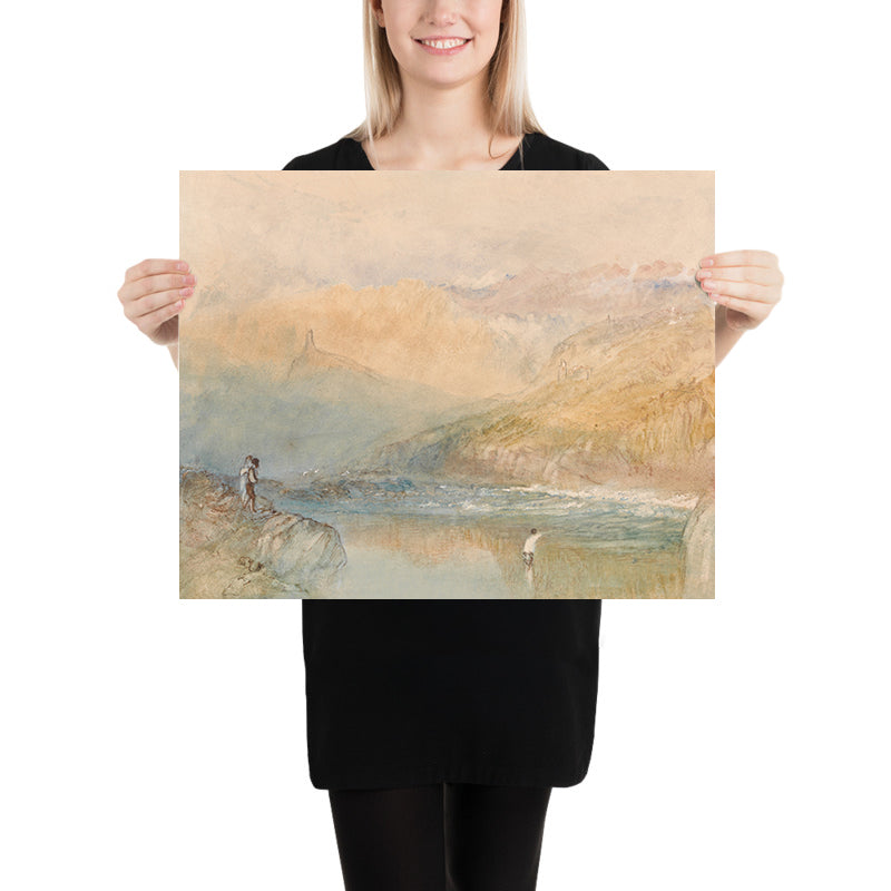 Turner (1775–1851) was Britain’s great Romantic luminary, often called the “painter of light.” His innovative treatment of atmosphere—reducing forms to shimmering planes of color—anticipated Impressionism and influenced generations of artists. A tireless traveler, he found in continental rivers and towns a perfect stage for his studies of weather, light, and the human figure dwarfed by nature.