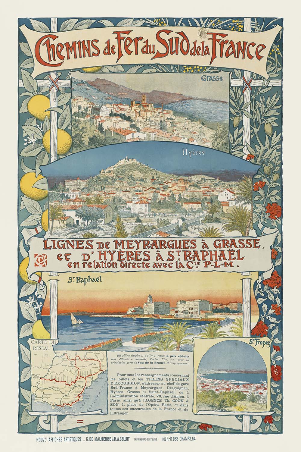 Provence Travel Poster: Lignes de Meyrargues à Grasse by Eugène Grasset, 1891