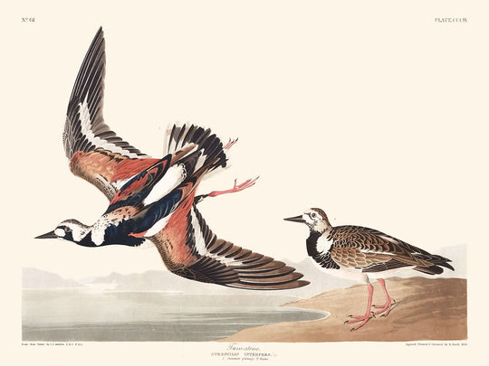 Il Turn-stone, realizzato dall'eccellente ornithologo e artista John James Audubon, ha fatto il suo debutto nel 1827 all'interno della illustre collezione di "Birds of America." Questa squisita illustrazione di uccelli cattura l'essenza della dedizione di Audubon al suo mestiere, mostrando la bellezza elusiva e i dettagli intricati del Turn-stone nel suo habitat naturale.