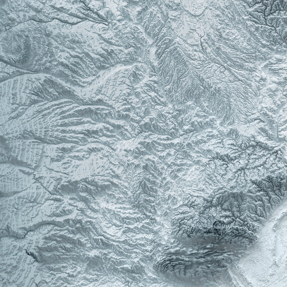 Our shaded relief prints use ultra high resolution topographic data and a secret 3D rendering process to create the illusion of raised terrain — like the mountains are about to lift right off the page. No labels, no borders, no distractions. Just the raw shape of the land, brought to life in a clean, modern style.