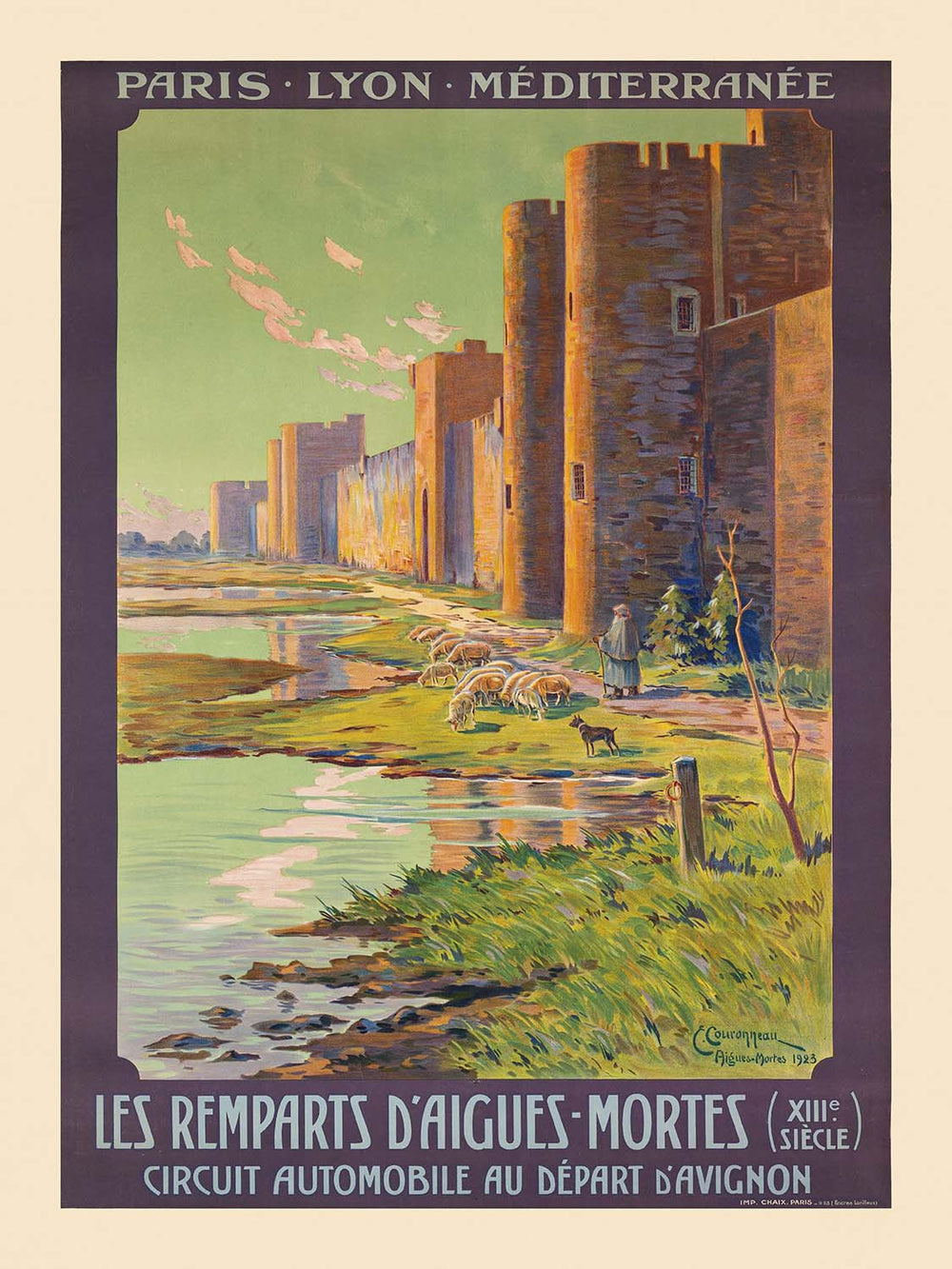 Aigues-Mortes Travel Poster: Les Remparts by Ernest Couronneau, 1923