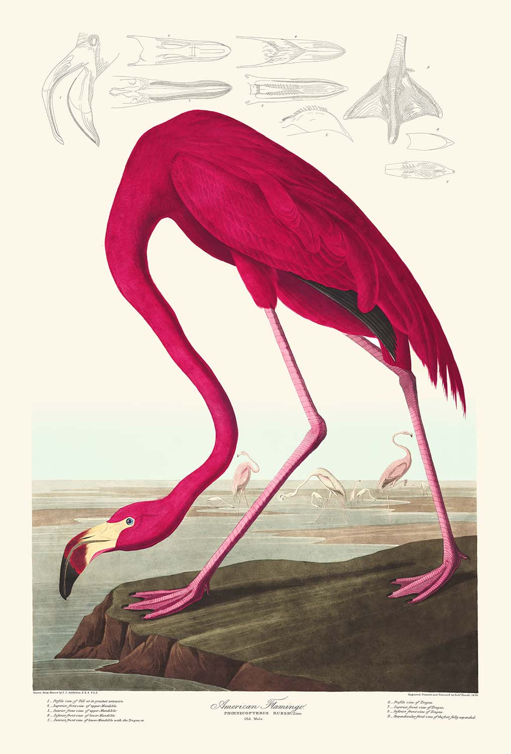 American Flamingo, first published in 1827, is one of the most recognisable and beautiful illustrations from John James Audobon's magnum opus, The Birds of America. Just look at that pink!