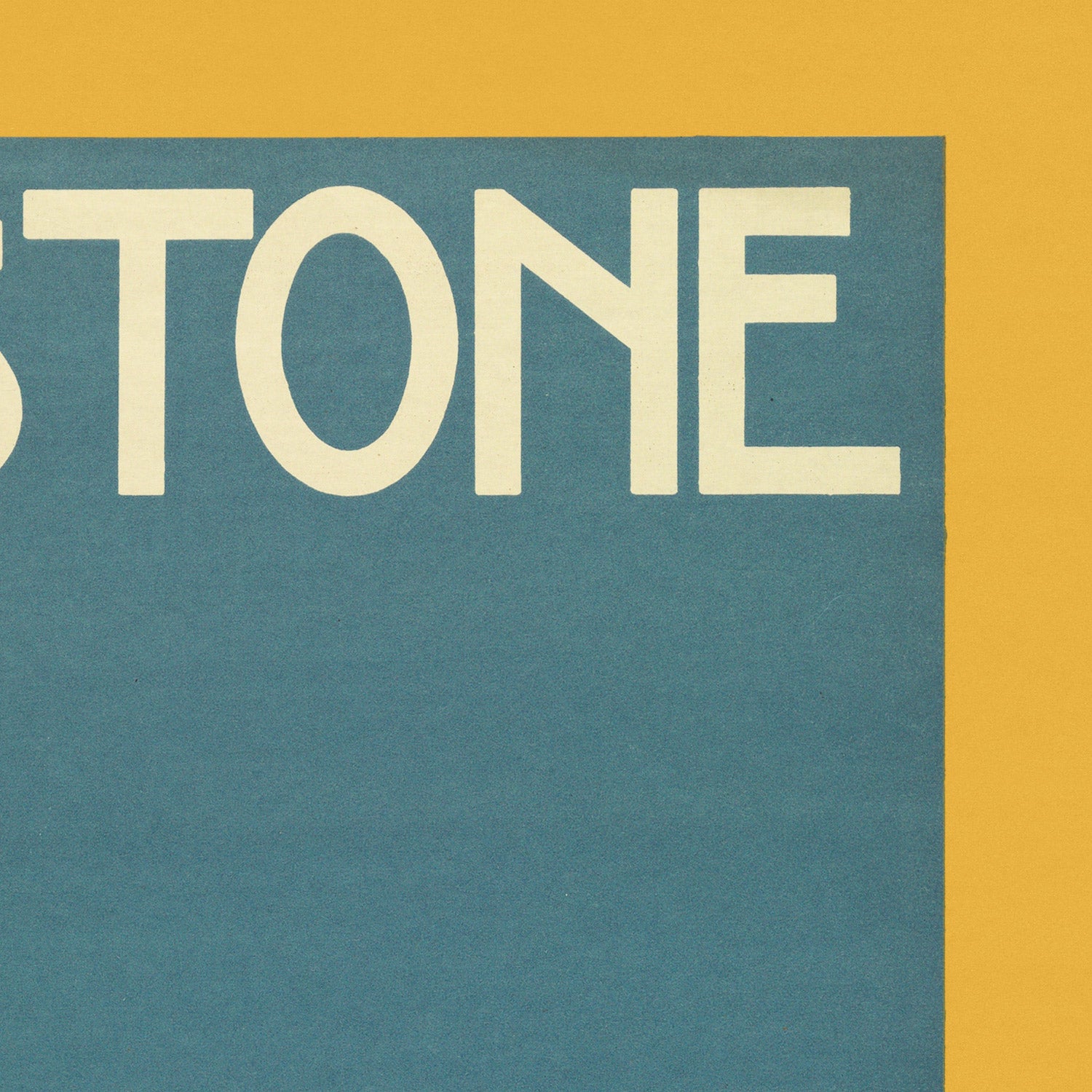 Edward McKnight Kauffer’s Godstone (1915) is a landmark London Underground travel poster that invites city-dwellers into the rolling Surrey countryside. Designed early in Kauffer’s British career, it captures the North Downs in a bold modernist language: a deep blue sky, a sweep of green hills, and a striking white chalk escarpment broken into angular planes of mauve and blue. Across the lower register a rhythm of brick‑red arches and little turrets marches from left to right, while dark, silhouetted rooftops and chimneys anchor the foreground. The large cream “GODSTONE” title sits within a mustard-yellow frame—classic Underground flair. In the fine print along the bottom edge you can see Electric Railway House, Westminster, and the printer Johnson, Riddle & Co., London.