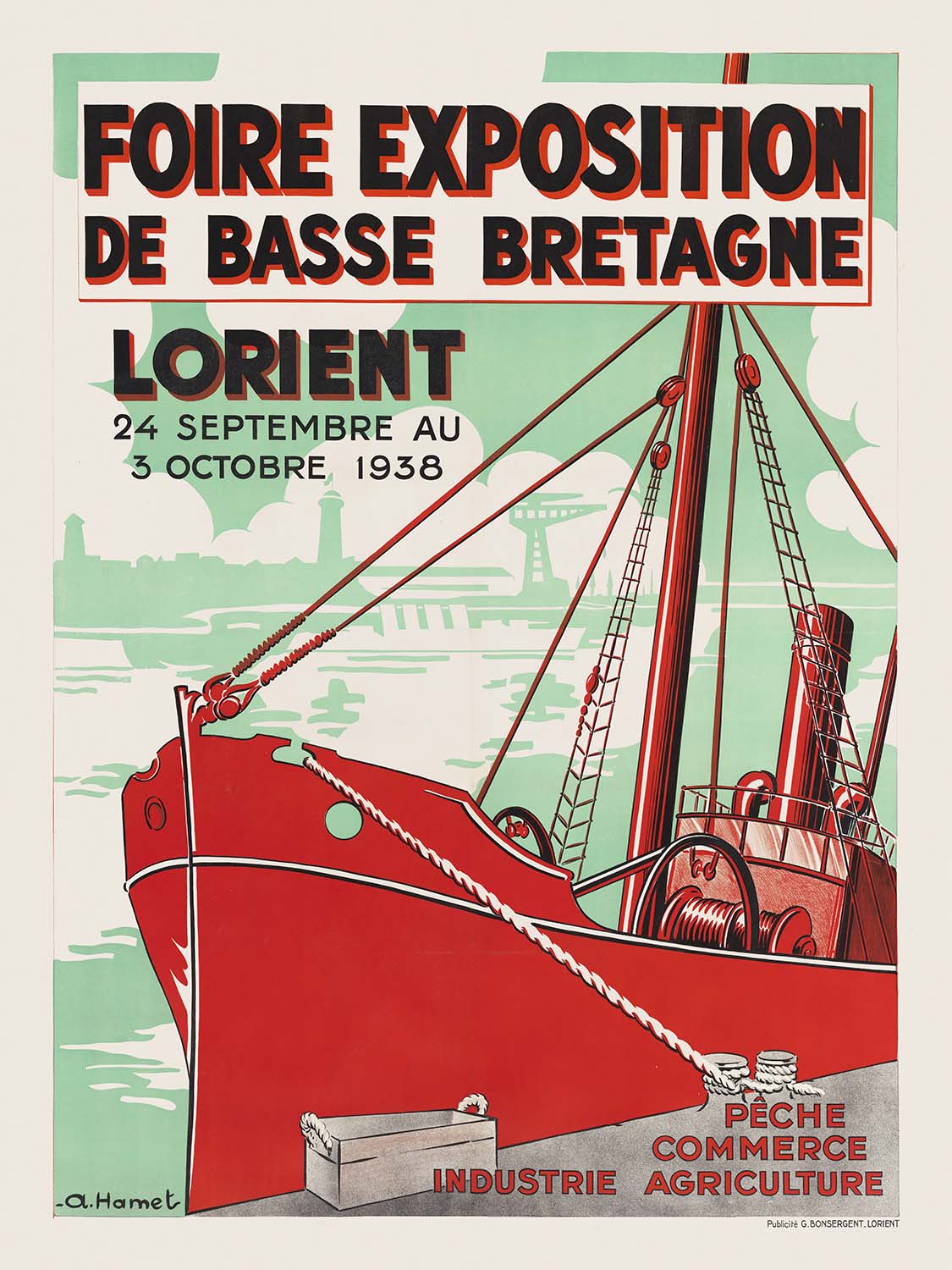Lorient Travel Poster: Foire Exposition de Basse Bretagne by A. Hamet, 1938
