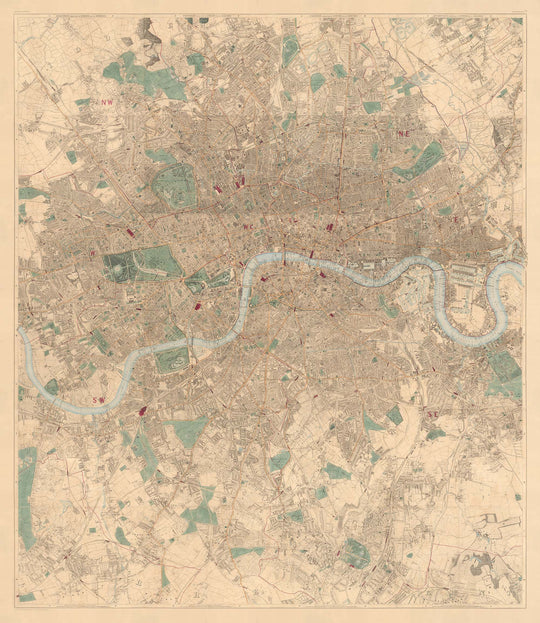 Originally printed in 24 sheets, this is the most detailed old London map you can find. Almost every single dwelling in London is drawn on this map - and considering there were around 3 million people living in London in the 1860s, that's a lot of dwellings.