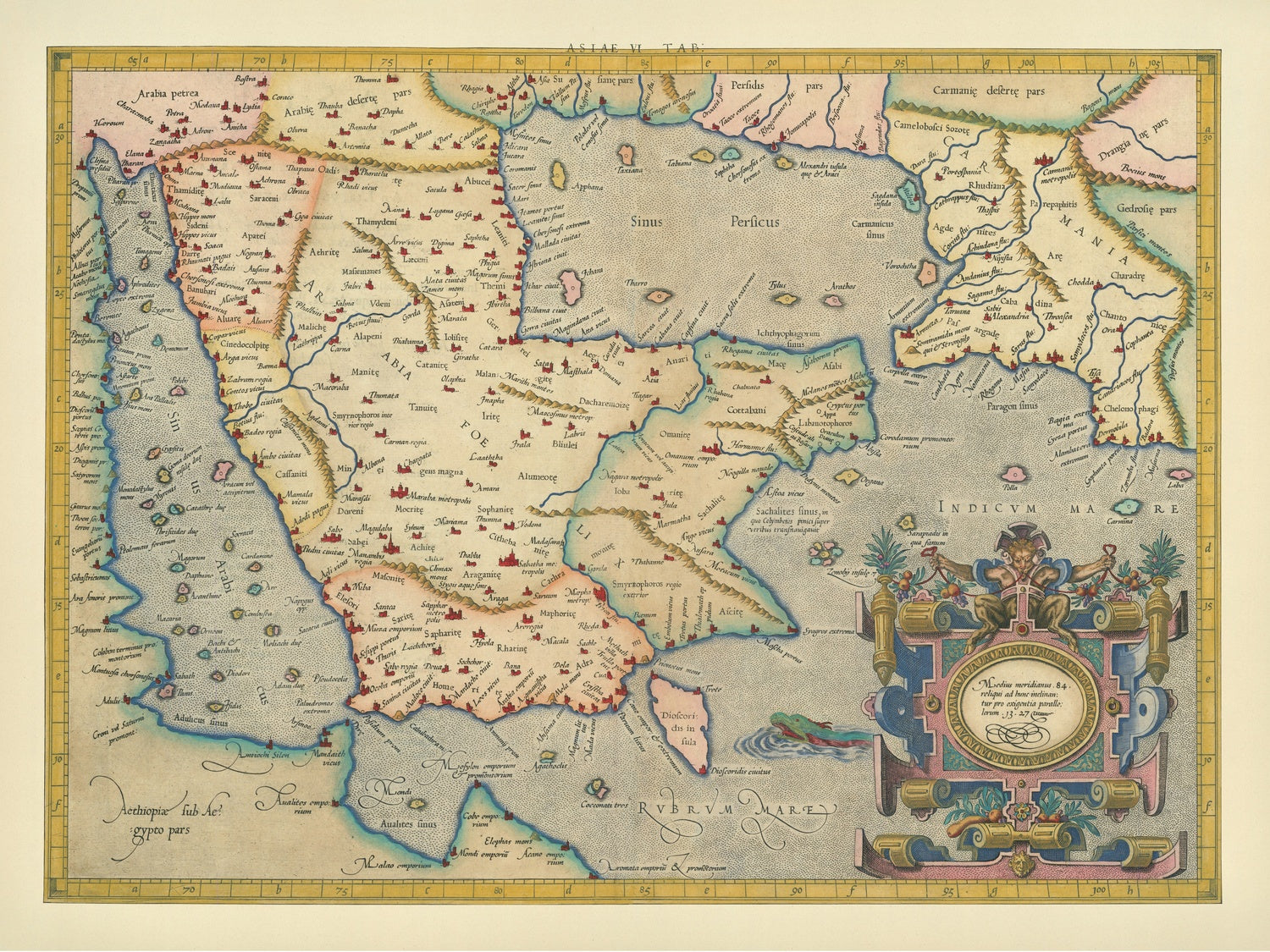 - Bodies of Water: The Red Sea (Sinus Perficus) and Persian Gulf (Sinus Persicus) labeled prominently.
