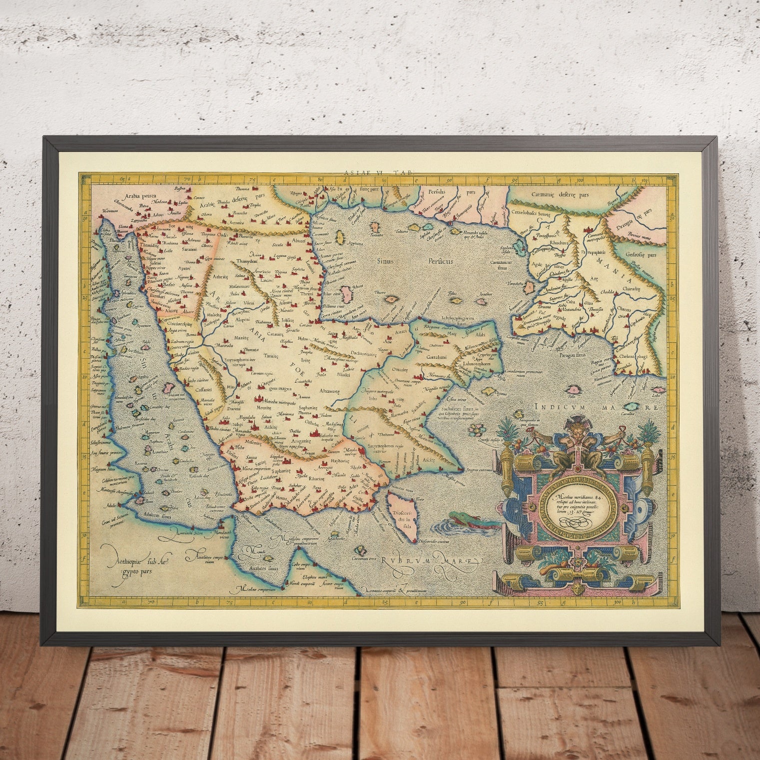 Historically, the map stands at the fulcrum between classical cosmography and the modern world atlas. It testifies to the enduring relevance of Ptolemy’s methods while acknowledging the realities of late sixteenth-century knowledge: expanding trade across the Red Sea and Indian Ocean, renewed interest in Arabian and Persian polities, and a humanist appetite for reconciling texts with things seen. For the discerning collector, Asiae VI Tab. offers more than a portrait of Arabia and the Persian Gulf; it is a meditation in copper and color on how civilizations inherit, test, and ultimately refine the maps by which they understand their world.