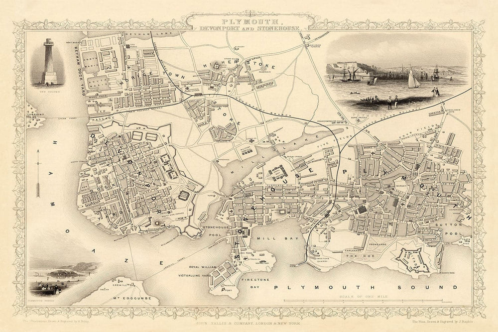 Around the edges of the map are detailed engravings of prominent buildings and vistas of Plymouth - click some of the detailed images to zoom in and marvel at their beauty.