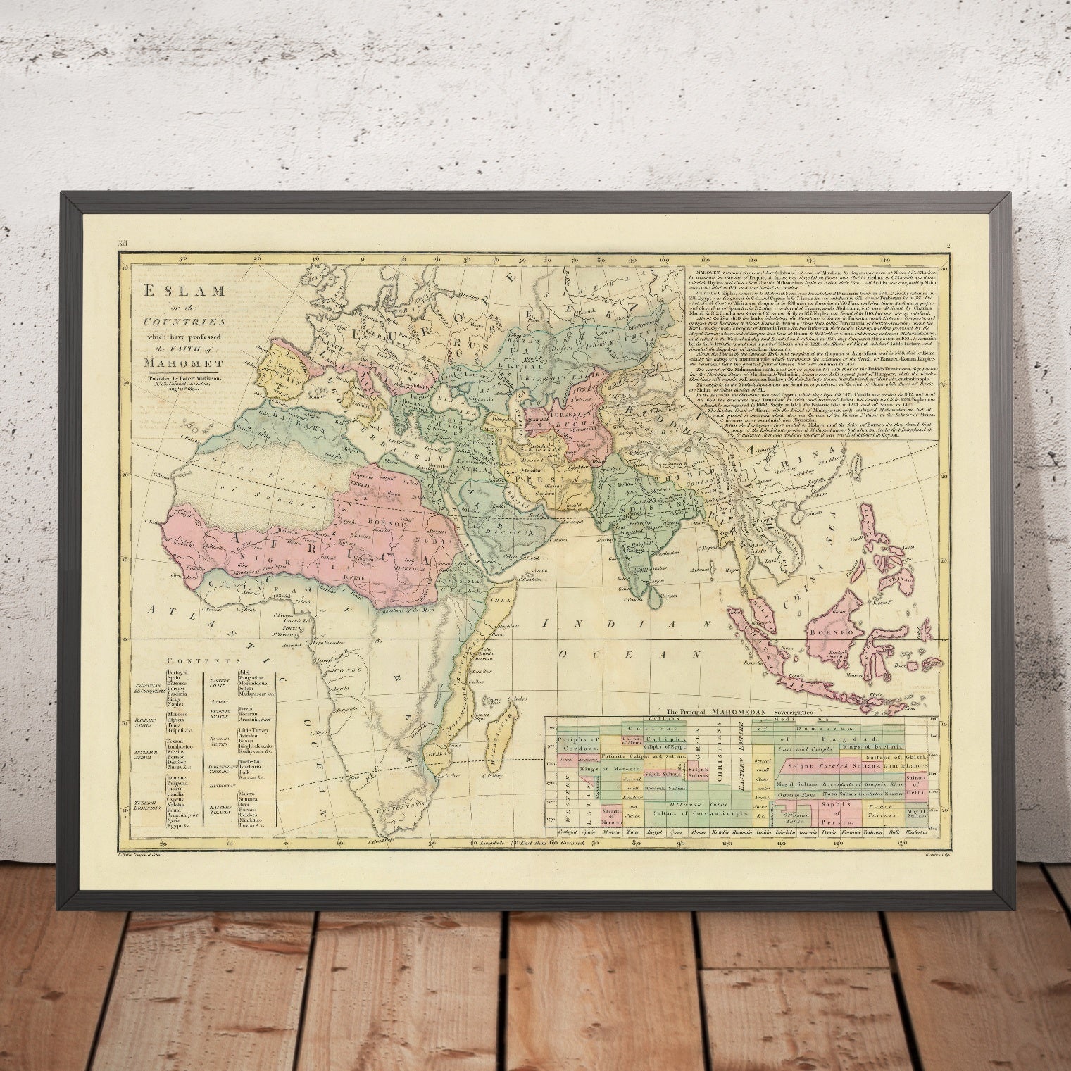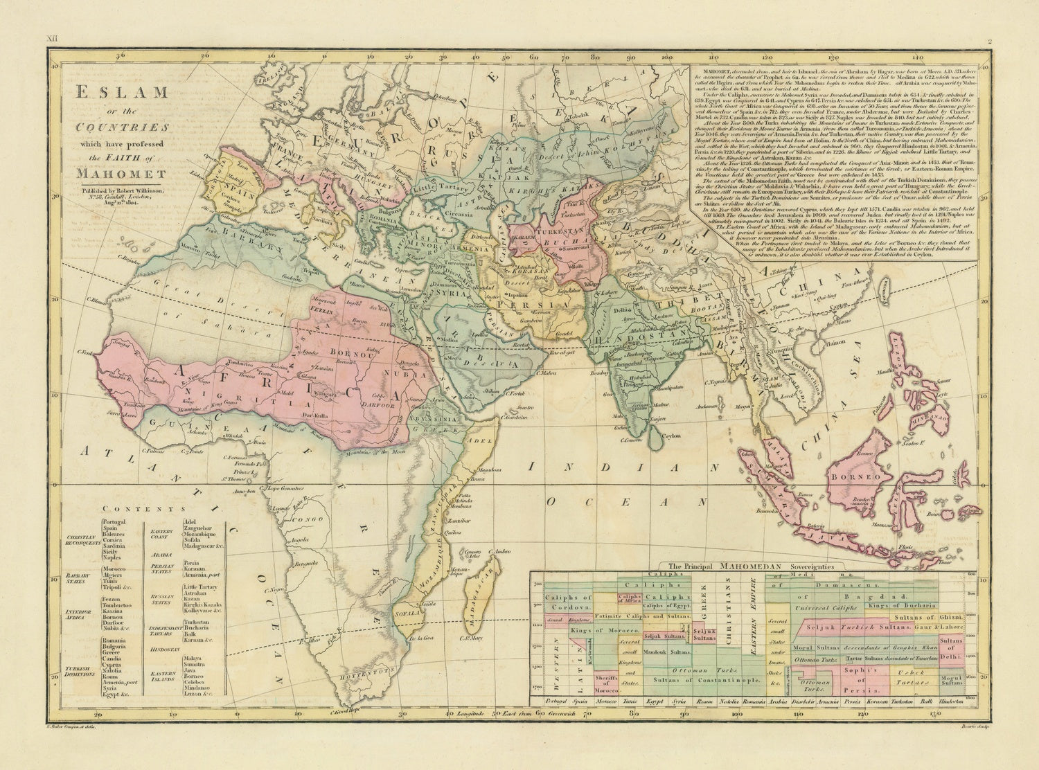 - Principal Mahomedan Sovereignties Chart: A section listing notable Islamic sovereigns and their respective regions.