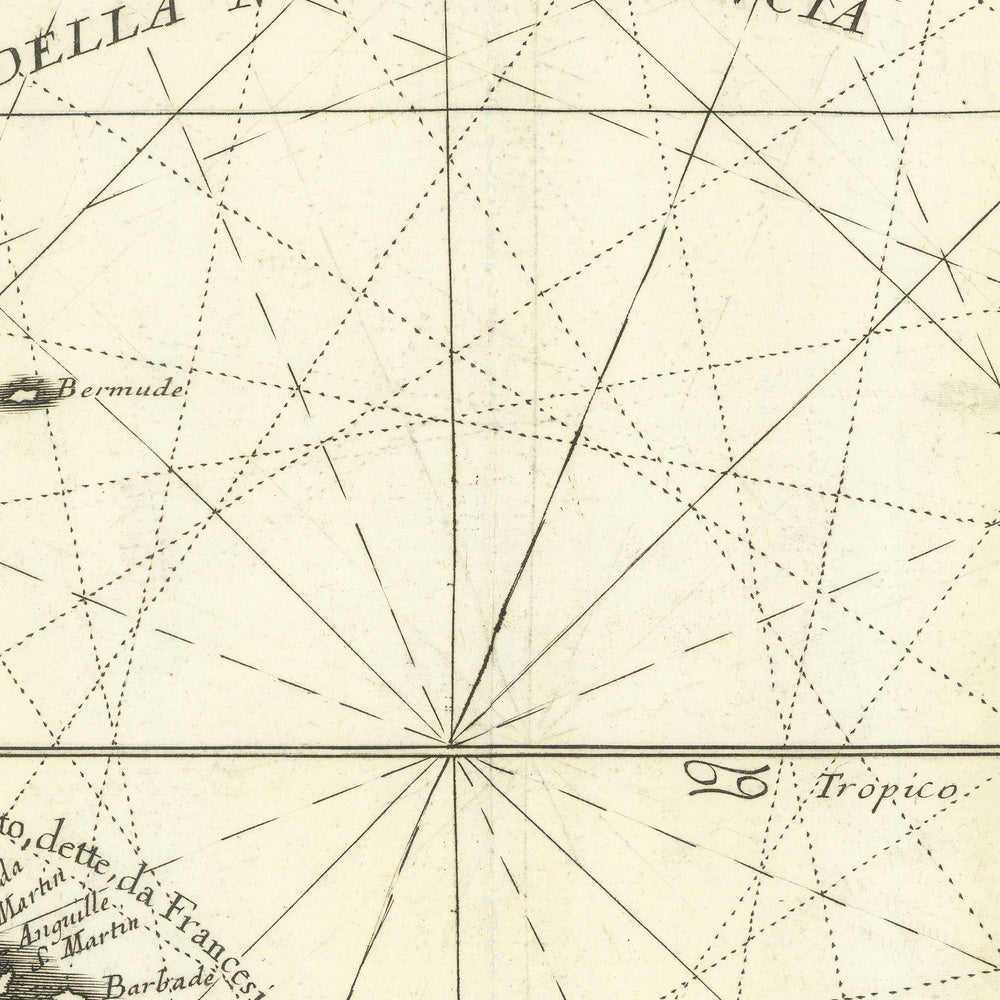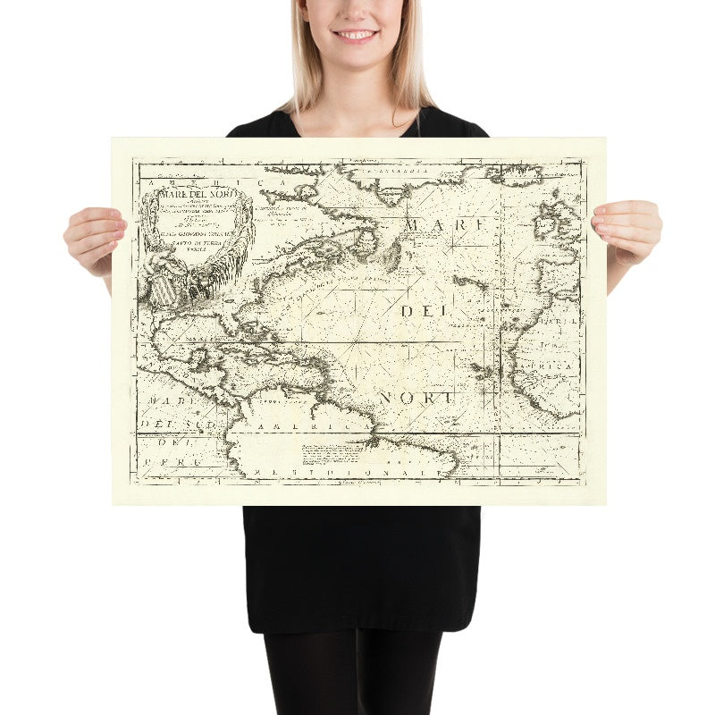 - Navigational Lines: Lines showing navigational routes across the Atlantic.