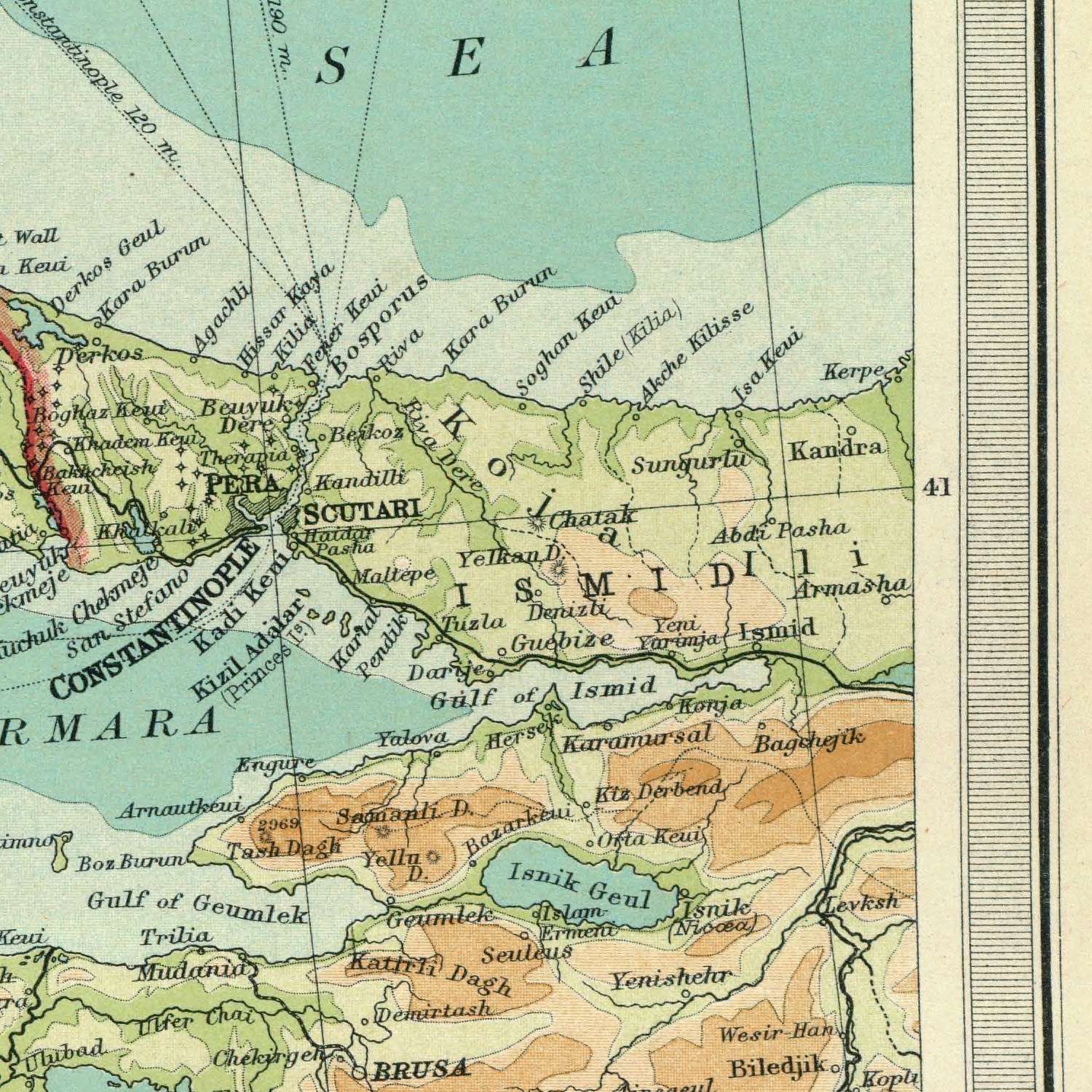 - Inset maps of Athens (1:300,000 scale) and the Dardanelles/Bosporus (1:500,000 scale).