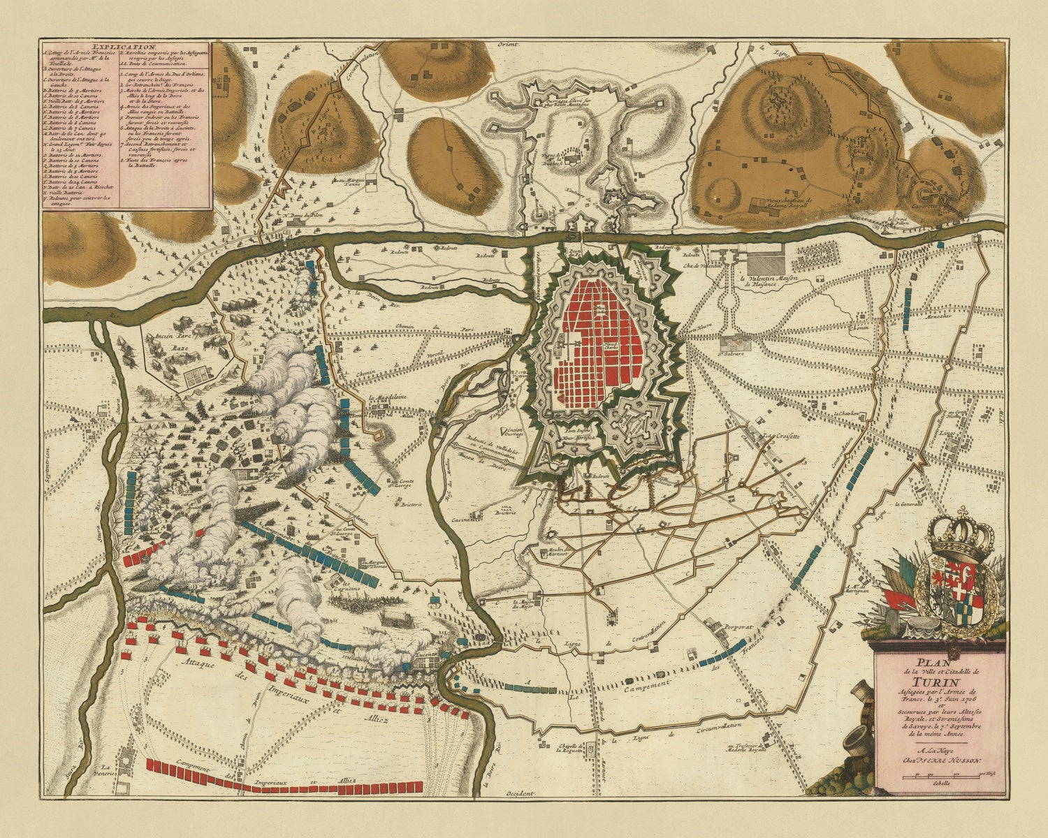 - Extra notes: Rare depiction of the Siege of Turin (June–September 1706) during the War of the Spanish Succession; French siege under Louis de la Feuillade was ultimately countered by Prince Eugene of Savoy.