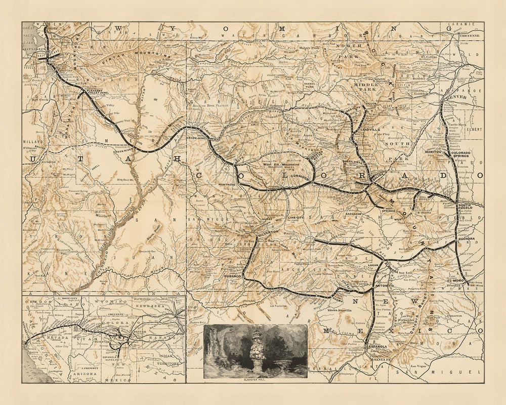 Old Railroad Map of Denver & Rio Grande Railroad System, 1882: Denver, Pueblo, Leadville, San Miguel County, Utah
