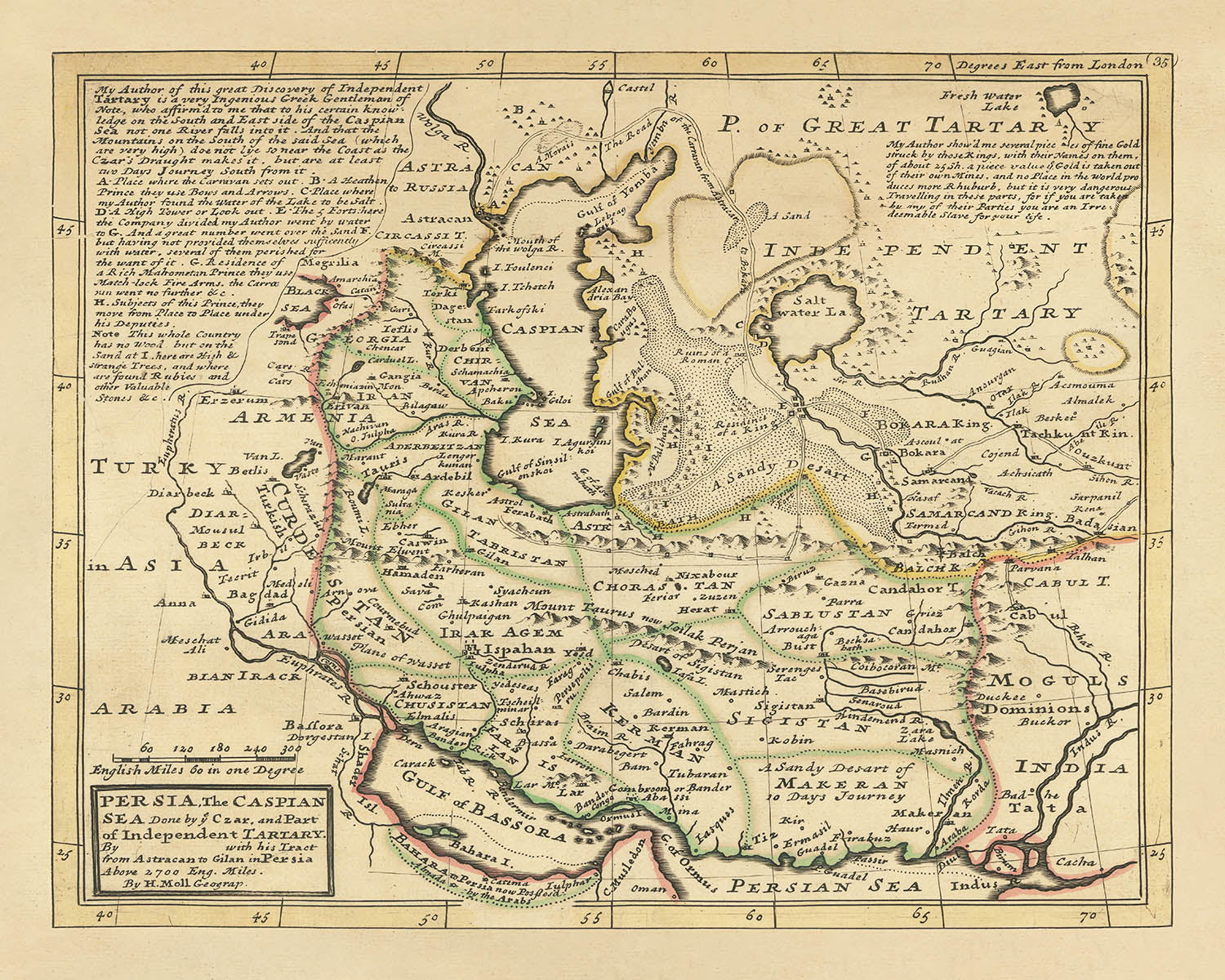 - Additional Notes: Scarce map of Persia and the Caspian Sea and adjoining regions, published in London by Herman Moll, based upon Carl Van Verden's landmark mapping of the Caspian.