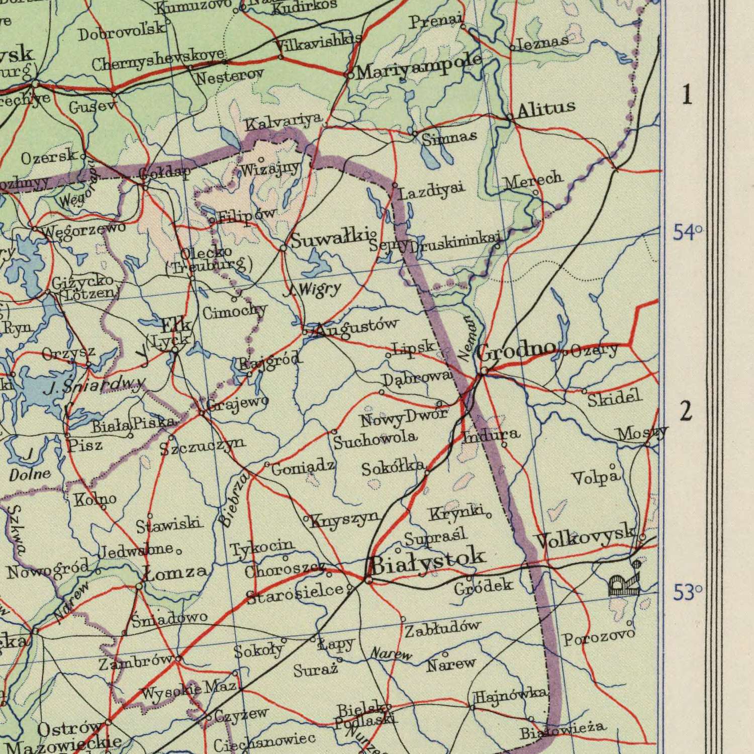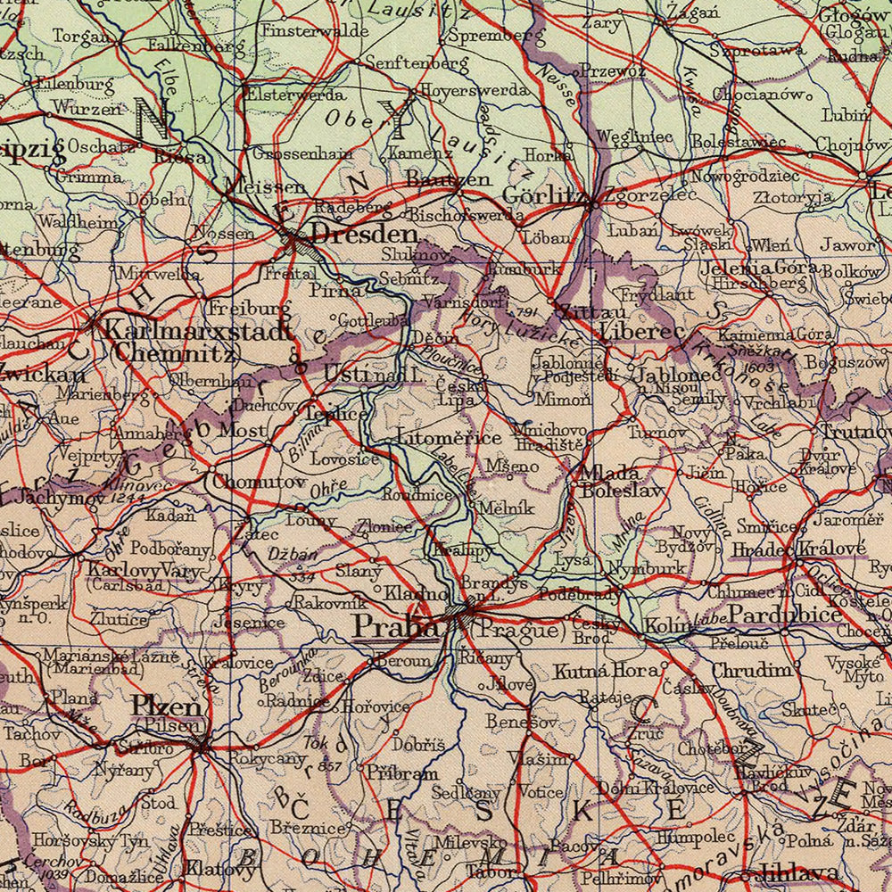 To the east, Poland’s broad plains and river-lattice receive an equally sensitive treatment. The Vistula cuts a commanding axis from Kraków through Warsaw to the Gulf of Gdańsk, while the Oder links Wrocław and Szczecin, underscoring the importance of waterways in settlement and trade. Bartholomew’s relief shading clarifies the arc of the Sudetes and the high shoulders of the Tatras and Beskids, and the map’s provincial labeling places Silesia, Greater Poland, Pomerania, and Masovia in immediate context. Along the Baltic, gradient blues step out into the Gulf of Gdańsk, while inland the Masurian lake country is delicately stippled. Clear voivodeship boundaries and carefully ranked city symbols—Łódź, Poznań, Gdańsk—convey a nation balancing historic regions with modern administration amid newly settled frontiers.