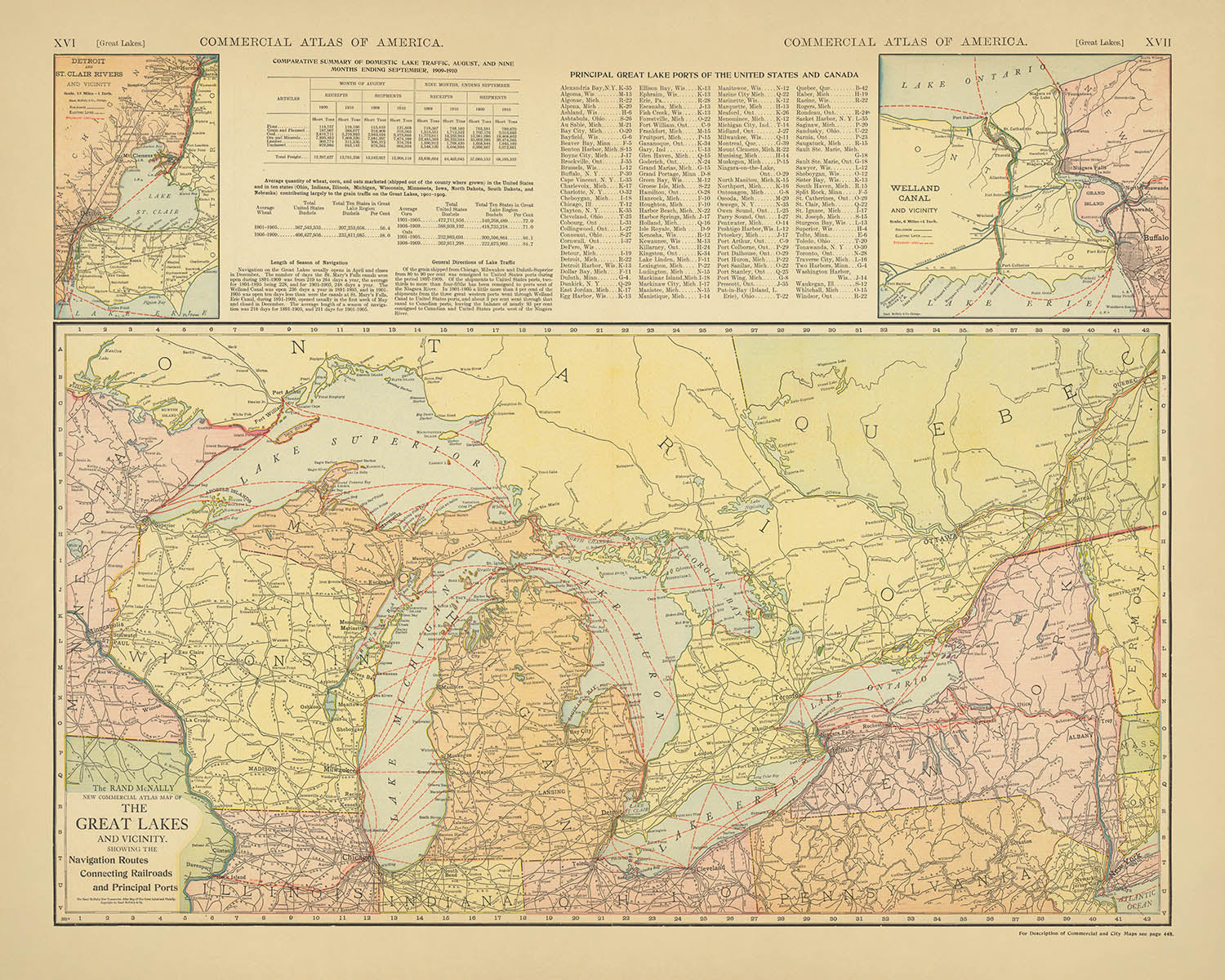 - Inset maps for Detroit and St. Clair River, and the Welland Canal