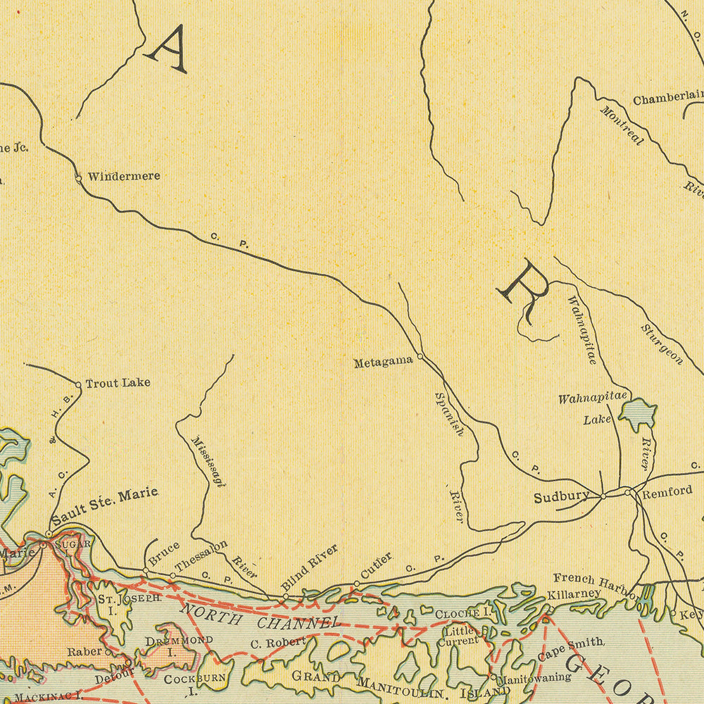 Behind this synthesis stands Rand McNally & Company, a pillar of American cartography since the mid-nineteenth century, whose atlases and commercial maps helped standardize how a modern nation pictured distance, time, and connection. Their work braided fresh data with practiced draughtsmanship, serving the needs of shippers, railroaders, and civic planners who demanded clarity at speed. This map exemplifies the firm’s talent for integrating modes—steamship routes and railroads, ports and provincial borders—into a single, comprehensible diagram of movement. It is a study in reliable information made elegant, and a reminder that the Great Lakes are less an edge than a center: a freshwater empire whose bearings, boundaries, and busy corridors defined North American enterprise.