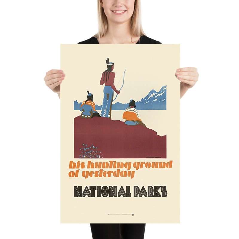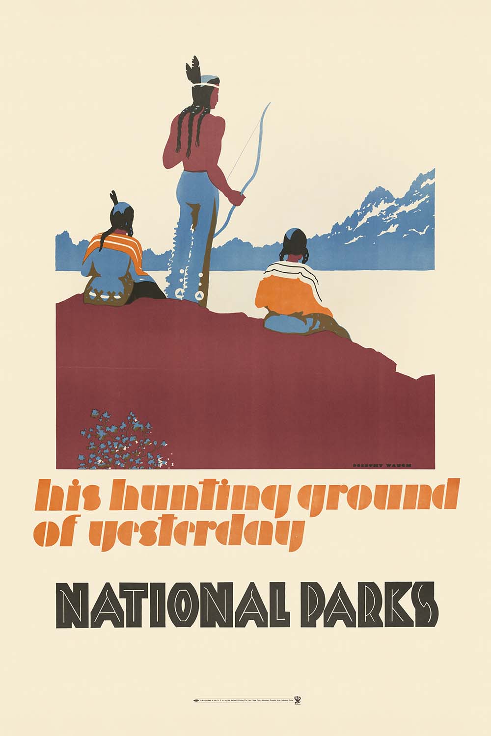 United States National Parks Travel Poster: His Hunting Ground of Yesterday by Dorothy Waugh, 1930