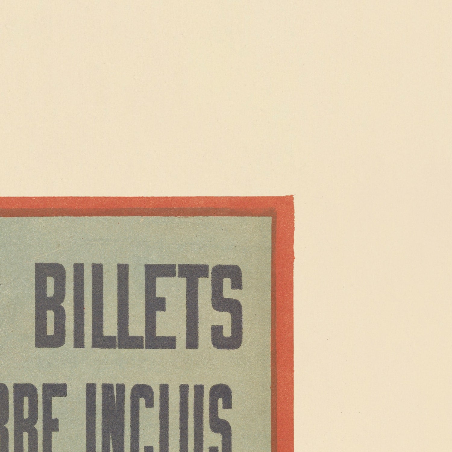 Chemins de Fer de l’Est. Voyages circulaires dans les Vosges by Eugène Bourgeois (1891) is a classic Belle Époque railway poster inviting travelers to discover the Vosges in eastern France. Bourgeois arranges the design as a collage of alpine vistas and waterfalls, anchored by the bold scarlet word “VOSGES.” Among the most striking scenes is the frothing cascade at center, where milky water surges through boulders, and a high-country view shows hikers on the Hohneck ridge. The poster’s purpose is explicit: showcase the forests, lakes, and mountain passes that the Eastern Railway opened to leisure travel.